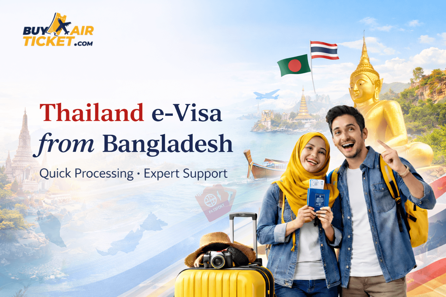 Dreaming of the vibrant streets of Bangkok, the serene beaches of Phuket, or the ancient temples of Chiang Mai? With the Thailand Sticker Visa, your adventure awaits! Whether you're planning a vacation, a honeymoon, or a business trip, the Thailand Sticker Visa for Bangladeshi citizens offers an easy and affordable way to experience the Land of Smiles.